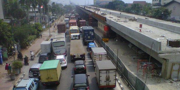 Jakarta - Arus lalu lintas di Jalan Yos Sudarso mengarah ke Pelabuhan Tanjungpriok, Jakarta Utara, siang ini, Jumat (7/9/2012), macet total. Lalu lintas yang didominasi oleh truk pengangkut kontainer terpantau tidak bergerak di dekitar Kantor Walikota Jakarta Utara.