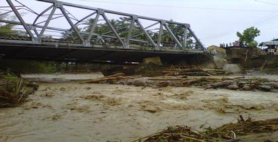 "Jembatan itu ambrol begitu saja. Setelah diteliti ternyata beton tulang penyangga badan jembatan selebar 15 meter itu sudah hancur termakan usia," kata Subari, salah satu pekerja bangunan perbaikan jembatan di Ketileng.