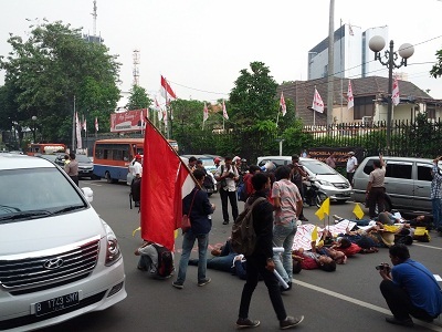 Para mahasiswa ini masih melakukan aksi tidur di tengah jalan. Mereka rencananya akan menggelar aksi hingga pukul 17.00 WIB. Para pengguna jalan yang hendak melintas diminta untuk menghindari Jalan Diponegoro depan LBH Jakarta untuk sementara waktu.