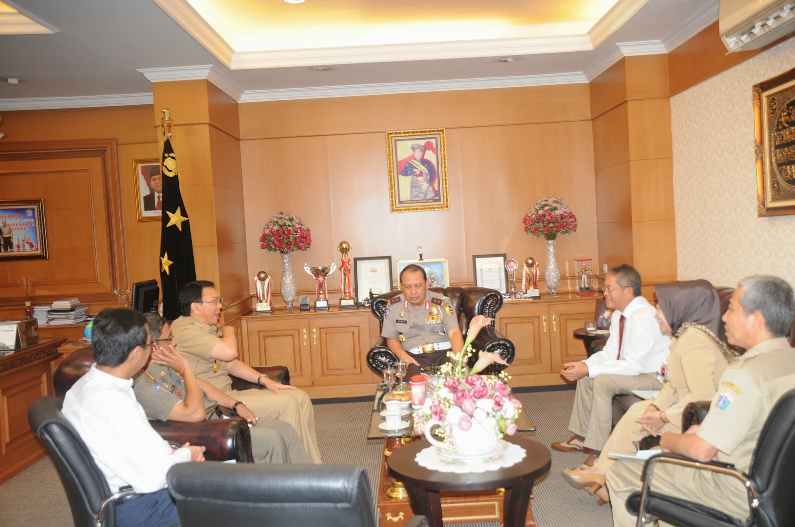 Kepala Korps Lalu Lintas Irjen Pol Drs. Pudji Hartanto, MM bersama para pejabat utama kepolisian. Rabu pagi menerima kunjungan Wakil Gubernur DKI Ir. Basuki T Purnama atau Ahok.