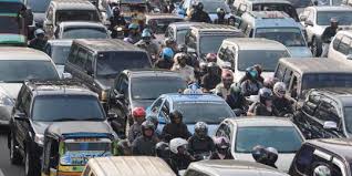 Jalan Gatot Soebroto - Rasuna Said tampak dipadati kendaraan. karena debit air